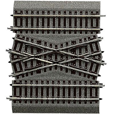 Mittelstück für doppelte Gleisverbindung DGV 15, geeignet in Verbindung mit 15°-Weichen/Kreuzungsweichen. Die kreuzenden Schienenstränge sind nicht elektrisch getrennt. Länge 115 mm. Mit Bettung.