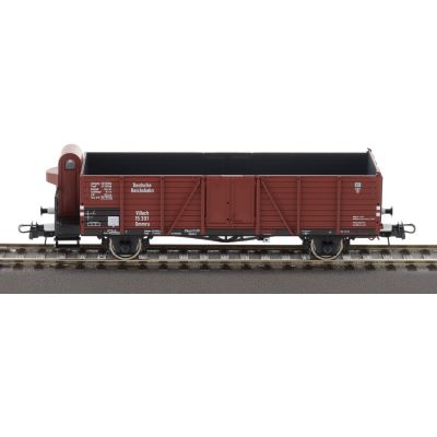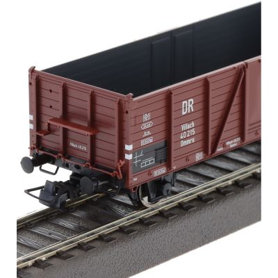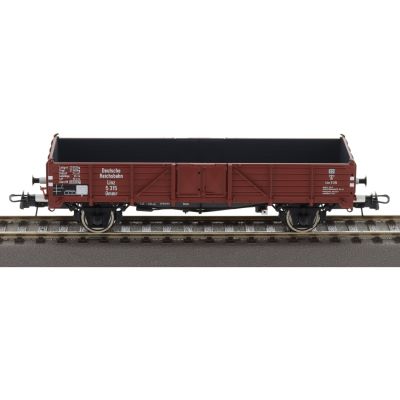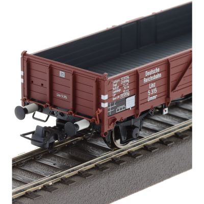 Die Wagen sind in einer klassischen braunen Farbgebung gehalten, die für Güterwagen der Deutschen Reichsbahn in der Epoche II typisch war. Die detaillierte Bedruckung, die präzisen Gravuren und die realistische Nachbildung des Bremserhauses bei einem der Wagen machen das Set zu einem optischen Highlight auf jeder Modellbahnanlage. Die offenen Güterwagen fügen sich nahtlos in das Gesamtbild der Epoche II ein und tragen zum authentischen Flair dieser Zeit bei.