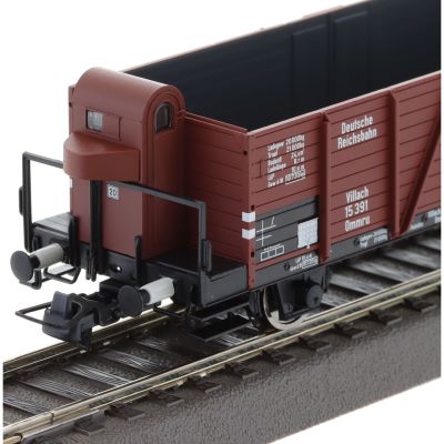 Die Deutschen Reichsbahn-Gesellschaft (DRG) setzte die offenen Güterwagen der Gattungen Ommr „Linz“ und Ommru „Villach“ in den 1930er- und 40er-Jahren vor allem für den Transport von Schüttgütern, landwirtschaftlichen Erzeugnissen und Kohle ein. Ihre robuste Bauweise und die hohe Ladefähigkeit machten diese Wagen zu einem wichtigen Bestandteil des Güterverkehrs der Reichsbahn. Die Gattung „Villach“ zeichnete sich zusätzlich durch das Bremserhaus aus, das die Bedienung durch das Bahnpersonal erleichterte. Roco hat diese Details sorgfältig in den Modellen nachgebildet und so ein stimmiges Set für Modellbahnfans der Epoche II geschaffen.