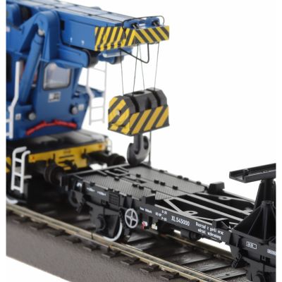 Der EDK 750 ist ein moderner Eisenbahndrehkran, der speziell für schwere Hebearbeiten entlang der Schiene entwickelt wurde. Solche Kräne werden häufig beim Gleisbau, Brückenbau oder beim Beheben von Unfällen eingesetzt. Mit seinem leistungsfähigen Teleskopausleger und der Fähigkeit, schwere Lasten zu heben, ist der EDK 750 ein unverzichtbares Werkzeug für die Bahninstandhaltung. Das Modell von Roco fängt die komplexe Technik und Vielseitigkeit dieses Krans perfekt ein.