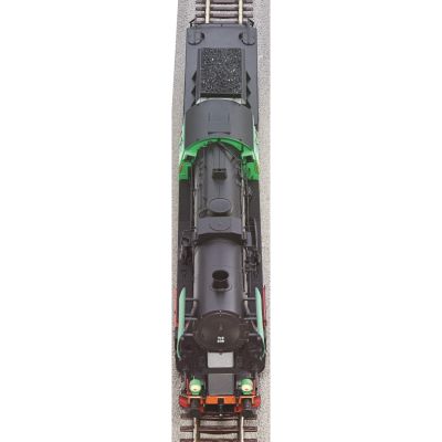 Die Roco 78112 beeindruckt mit ihrer präzisen Nachbildung historischer Details. Das grüne Führerhaus mit auffälligen Verzierungen, die großen Lampen an Front und Tender sowie die gerundeten Räumbleche verleihen dem Modell ein authentisches Erscheinungsbild. Die feinen Speichenräder und die separat angesetzten Steckteile runden das Gesamtbild ab.
