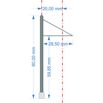 Die 80 mm hohen Masten bestehen aus Metall und sind mit einem praktischen Gewindestab ausgestattet, der eine sichere und dauerhafte Montage auf der Anlage ermöglicht. Ob einzeln oder in Reihe montiert – sie sorgen für einen stabilen Halt und eine gleichmäßige Ausrichtung Ihrer Oberleitung.