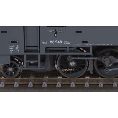 Das Modell ist in der charakteristischen eisengrauen Farbgebung der frühen Reichsbahnzeit gestaltet. Die präzise aufgebrachten Beschriftungen und Markierungen entsprechen dem historischen Vorbild und verleihen der Lokomotive ein authentisches Erscheinungsbild. Die feinen Details wie Leitungen, Ventile und Kesselarmaturen machen die Lokomotive zu einem echten Blickfang auf der Anlage.