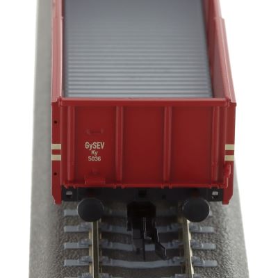 Der Ky-Güterwagen der GySEV ist in einem typischen Braunton gehalten, der das klassische Erscheinungsbild der Epoche III widerspiegelt. Diese dezente, aber authentische Farbgebung passt perfekt zu Güterzügen der damaligen Zeit und fügt sich harmonisch in historische Modellbahnszenen ein. Die fein ausgeführte Bedruckung und die exakte Lackierung geben das Original detailliert wieder und machen das Modell zu einem visuellen Highlight auf der Anlage.