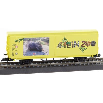 Der Tillig 14854 START-Schiebewandwagen „Mein Zoo“ bringt Farbe und Leben auf Ihre Modellbahnanlage. Mit seinen unterschiedlich gestalteten Wagenseiten, die liebevoll mit Tiermotiven bedruckt sind, zieht dieser Güterwagen alle Blicke auf sich. Ein besonderes Highlight: Für jedes verkaufte Modell spendet Tillig 1,00 € an den Tierpark Zittau, wodurch Sie mit dem Kauf nicht nur Ihre Sammlung bereichern, sondern auch einen guten Zweck unterstützen.