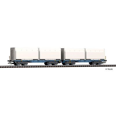Tillig 15080 TT Doppeltragwagon InnoWaggon 2x40' mit 4 WoodTainer, Ep.VI