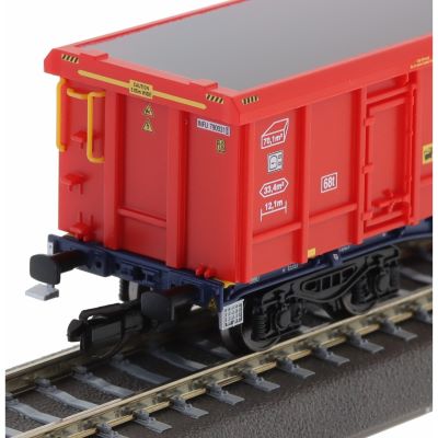 Das Modell überzeugt durch seine feine Detaillierung, stimmige Bedruckung und farblich realistische Gestaltung. Die vier beladenen ScrapTainer fügen sich harmonisch in das Gesamtbild ein und geben dem Wagen eine dynamische, gewerbliche Ausstrahlung. Mit einer LüP von 222 mm ist der Wagen perfekt für den Einsatz in modernen TT-Güterzügen geeignet.