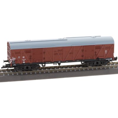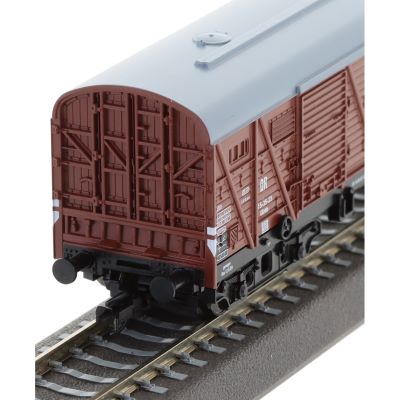 Der gedeckte Güterwagen zeichnet sich durch seine detailgetreue braune Lackierung und die feinen Beschriftungen aus, die das Originalvorbild präzise wiedergeben. Mit einer Länge über Puffer von 132 mm ist der Wagen ideal für realistische Güterzüge. Die Kupplungsaufnahme mit Kurzkupplungskinematik sorgt für eine einfache Handhabung und einen stabilen Betrieb.