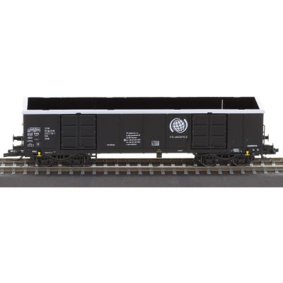 Das Modell ist in einem grauen Farbton lackiert, der dem Erscheinungsbild moderner Güterwagen entspricht. Die feinen Bedruckungen und Beschriftungen mit dem Logo von CTL Logistics und den technischen Daten sind sauber ausgeführt und verleihen dem Wagen eine realistische Optik. Die verstärkten Türen sind ebenfalls detailgetreu nachgebildet und betonen die robuste Bauweise des Fahrzeugs.