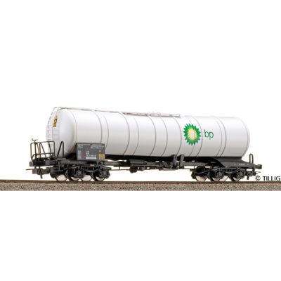 Der Kesselwagen Bauart Zans "BP" der Deutschen Bundesbahn besitzt eine vorbildgetreue Lackierung und Bedruckung. Das Modell zeichnet sich durch seine maßstäbliche Nachbildung des Rahmens und der feinen angesetzten Details aus. Die Länge über Puffer beträgt 195 mm.
