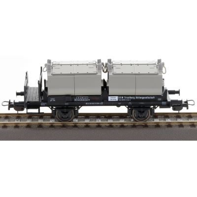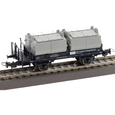 Der Tillig 77021 Kalkkübelwagen „SKW Trostberg“ ist ein exquisites Modell des Kalktransportes aus der Epoche IV und stellt einen wichtigen Bestandteil des deutschen Güterverkehrs dar. Eingestellt bei der Deutschen Bundesbahn (DB), zeichnet sich dieser Wagen durch eine vorbildgetreue Lackierung und detaillierte Bedruckung aus, die das charakteristische Erscheinungsbild des „SKW Trostberg“ perfekt widerspiegeln.