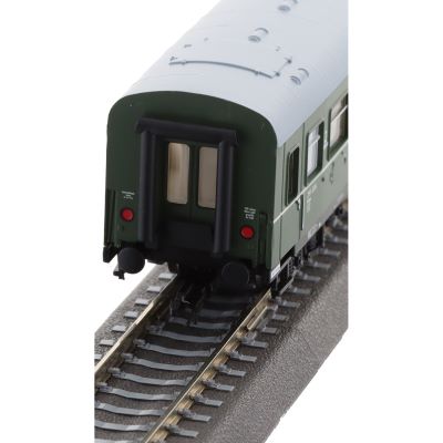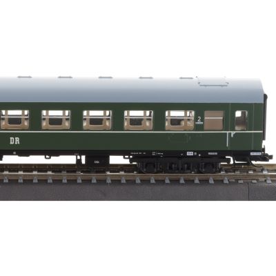 Der Wagen ist in einem klassischen DR-Grün gehalten und mit feinsten Beschriftungen versehen. Die akkurate Nachbildung der Fenster, Türen und Dachformen verleiht dem Modell einen besonders realistischen Look. Die detaillierte Inneneinrichtung lässt auch im Fahrbetrieb durch die Fenster einen authentischen Blick auf das Wageninnere zu.