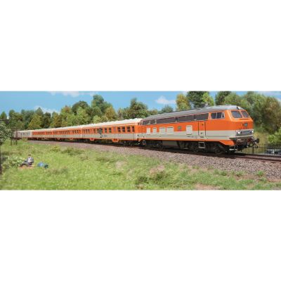 Die Trix 22646 Diesellokomotive der Baureihe 218 bringt eine besonders markante Farbvariante der Deutschen Bundesbahn auf die H0-Anlage. Die Lok mit der Betriebsnummer 218 140-2 erscheint in der auffälligen reinorange/kieselgrauen Lackierung, wie sie ab Mitte der 1980er-Jahre im Einsatz war – sowohl im Intercity- als auch im Nahverkehr. Eine gelungene Mischung aus nostalgischem Design und moderner Digitaltechnik für Epoche IV.