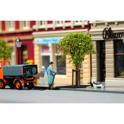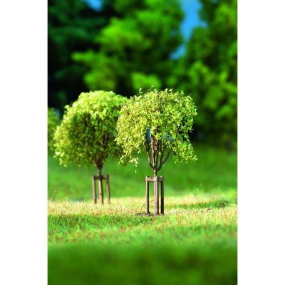 10 freshly planted deciduous trees, still supported by tree stakes and with straps, are waiting for their place on the model railway layout. A foliage is included in the kit for the foliage dress. The small base plate fits into the grid of the walkway plates art. 42 657 and can be completed with the tree grid art. 42 658.