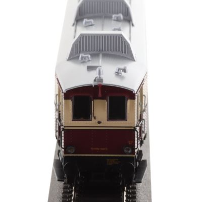 Equipped with a high-quality D&H decoder and built-in locomotive sound, the model offers realistic sounds and smooth running movements. The interior lighting and driver's cab lighting, together with the precisely inserted windows and the finely engraved bodywork, ensure the highest degree of faithfulness to the original. The transmission block is made of die-cast zinc and, in conjunction with the drive on two axles, ensures optimum driving characteristics.