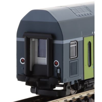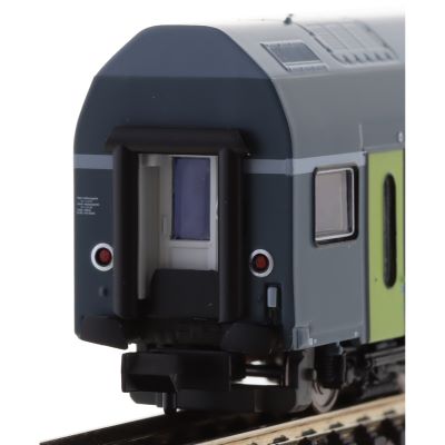 About the prototype: Double-decker trains have successfully formed the backbone of regional transportation for many years. Double-decker trains are the ideal solution, especially on routes with short platform lengths and high passenger volumes. The proven single-carriage concept of the TWINDEXX Vario double-decker fleet has been supplemented by an electric railcar. The four-car multiple units of the Do 2010 generation each consist of 2 railcars and 2 middle cars. With the powered TWINDEXX Vario railcar, the trains can now also be used as pure double-decker multiple-unit trains. This means that in addition to classic push-pull operation with electric or diesel locomotives, they can also be used as electric multiple units. Depending on the intended use and desired capacity, this railcar can be combined with a center car and control car. The central buffer coupling enables operation in double traction and thus the implementation of a wing concept. The trains with combined high and low access are comfortably equipped with generous seat spacing and plenty of storage space. The double-decker single coaches also allow the train set to be lengthened and shortened and thus adapted to fluctuating demand or future developments. They can therefore be used for a wide variety of operational applications in regional and long-distance transport.
