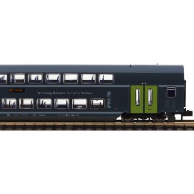 About the model: The TWINDEXX VARIO® double-decker center car DBpza783.0 used by NAH.SH has been faithfully reproduced by Brawa on a scale of 1:160. The detailed model shines with numerous optical details that authentically round off the model.