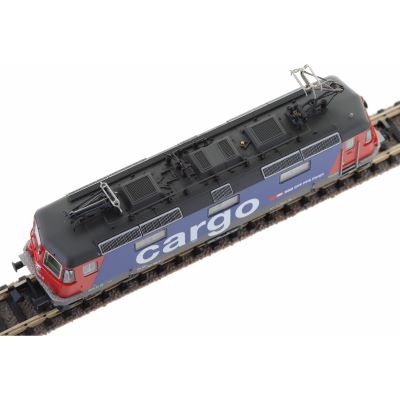 The Re 421 locomotives are used in cross-border services between Switzerland and Germany. For example, the colorful locomotives run along the Rhine Valley Railroad with long KLV trains. Like the prototype, the model has two different pantographs for use in Switzerland and Germany.