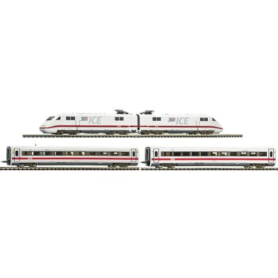 The set consists of a motorized power car (class 401.0), a 1st class car (801.8), a 2nd class car (802.8) and a non-motorized power car (401.5). Both power cars have the special "30 Years of ICE" paint scheme. The train is finely detailed, equipped with interior details, and prepared for digital operation.