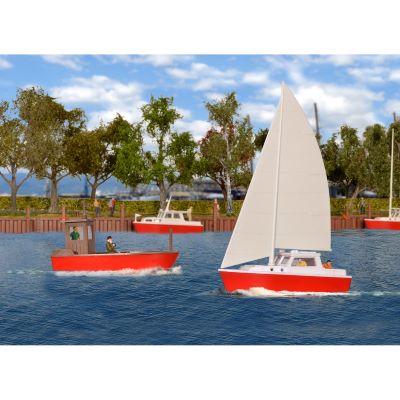 Kibri kedenzt you the high-quality kit "Boats" in the gauge H0. The set consists of 2 sailing boats, motor yacht and work boat.