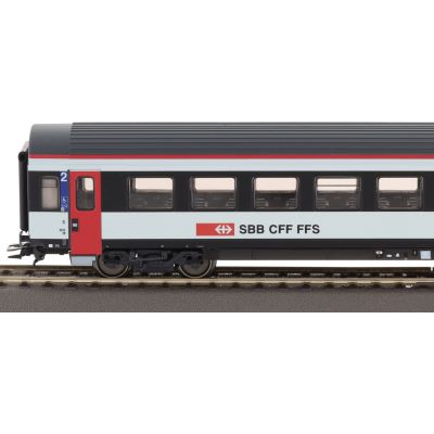 Prototype: 3 Swiss Federal Railways (SBB/CFF/FFS) passenger cars. Standard car type EW IV B, 2nd class. Styled in the current InterCity design, with striking red doors. Current operating condition.