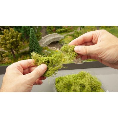 The base material of the super-realistic bushes is a natural fiber that is stable and easy to shape. For the natural optical effect, it was flocked with a special mixture of NOCH foliage and NOCH structure flock. This gives us a unique product that is ideal for representing dense vegetation in the model.