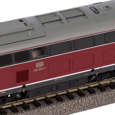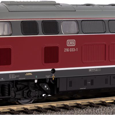 This is the class 216 in the DB version in Era IV. In the 1960s and 1970s, the class V 160 or 216 was the express locomotive for lines without overhead wire on the German Federal Railroad. The developers have implemented the striking design of the prototype in outstanding quality in the model and at the same time achieved ideal running characteristics. These attributes are underlined by the effective use of perfect engravings and a paintwork that is consistent down to the smallest detail. Contemporary LED technology serves as the basis for the light change in red/white as well as the light functions that can be switched by retrofitting a digital decoder. Furthermore, a suitable sound decoder is installed in this model at the factory and the buffer beam of the vehicle can be completed in line with the prototype using the included accessories.