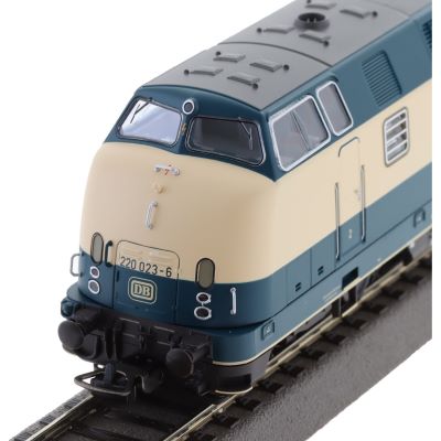Novelty 2023: Print version of the BR 220 of the German Federal Railroad in Era IV. The model has a PIKO sound decoder with matching loudspeaker ex works.