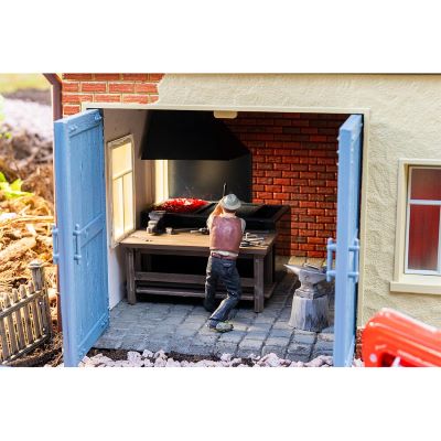 The eye-catching blue double doors can be opened to reveal a fully equipped workshop. Whether anvil, forge or workbench - everything inside is faithfully reproduced in detail and invites you to depict scenes of craftsmanship.