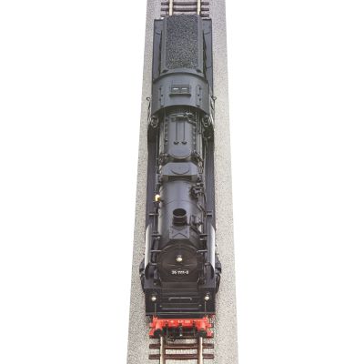 This model is designed for the H0 scale and a 2-wire direct current system (DC). The locomotive is driven on two axles of the tender and via a cardan shaft on all three driving axles of the locomotive, which ensures optimum power transmission. With a length over buffers of 261 mm, the locomotive is impressive and versatile. The light change is in white and is realized by energy-saving LED light sources. The model is suitable for a minimum radius of 360 mm.