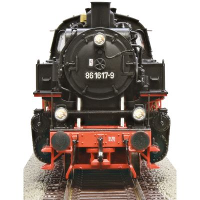 After the Second World War, 164 locomotives remained in the GDR. By 1970, 162 of these locomotives had been given computerized road numbers. The 86 1617-9 was stationed in the Aue depot of the Reichsbahndirektion (Rbd) Dresden. The retirement of the last locomotives of this class began in 1973. This model shows the locomotive in an authentic construction condition of the 1970s.