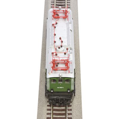 The model shows the large lamps of the Reichsbahn standard design, which are typical of the prototype. The pantograph type SBS-10/54 is also faithfully reproduced. Further details such as the extra windscreen wipers and the unobstructed view through the driver's cab help to make the model as authentic as possible. The wheel sets with low wheel flanges ensure high stability and excellent handling on the model railroad.