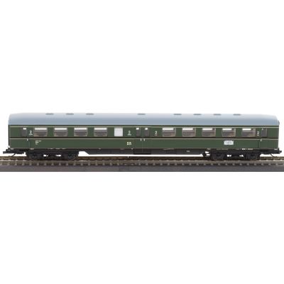 The DR "D 118 Leipzig-Cologne" passenger coach set consists of a 2nd class passenger coach and a 2nd class passenger coach, type E5, part 3. The set impresses with a detailed and true-to-scale design and a complete interior. The set is also prepared for retrofitting interior lighting.