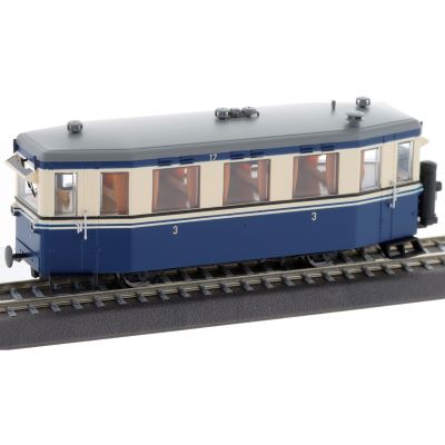 About the prototype: In 1923, Deutsche Werke Kiel built a series of railcars for the 1000 mm gauge, one of which was the T7. From its first owner, the Finthen-Wackernheim transport company, the railcar passed into the possession of the Süddeutsche Eisenbahn-Gesellschaft in 1928, where it was unsuitable for the track conditions. In 1934, the railcar was fitted with a 110 hp engine and returned to regular service for the Mindener Kreisbahnen. During the Second World War and for some time afterwards, the railcar was rarely used due to fuel shortages. Since the meter gauge era ended on the Mindener Kreisbahn, the motor of the railcar was removed in 1956 and it continued to be used as sidecar 565 until it was finally scrapped in 1963.