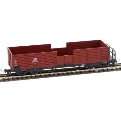 The German State Railroad open freight car OO impresses with its detailed shape and paint scheme. The length over buffers is 123 mm and the track gauge is 9 mm. The coupler pocket is in-house.