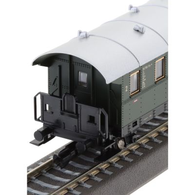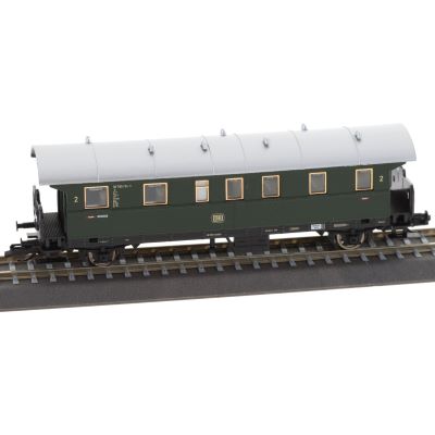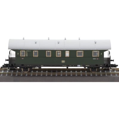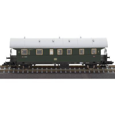 The Tillig 13025 TT 2nd class Bi passenger coach of the German Federal Railroad (DB) from Era III is a detailed model of a passenger coach. The car is in the nominal size TT and designed for direct current systems (2L-DC). It has an NEM coupler pocket with KK kinematics and is not equipped with digital control or a sound module.
