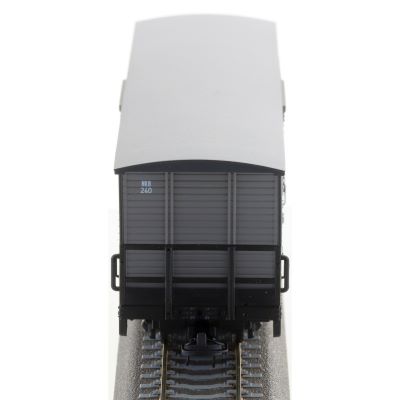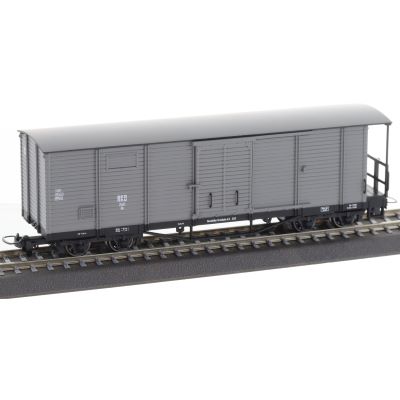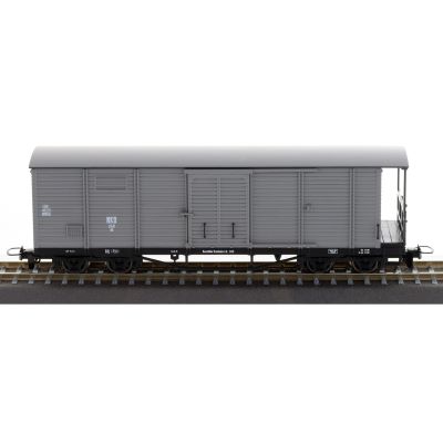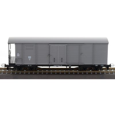 The GG boxcar is of the NKB (Neustäder Kreisbahn) design and is from Era III. The car has its own coupler pocket.