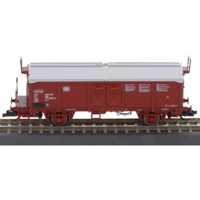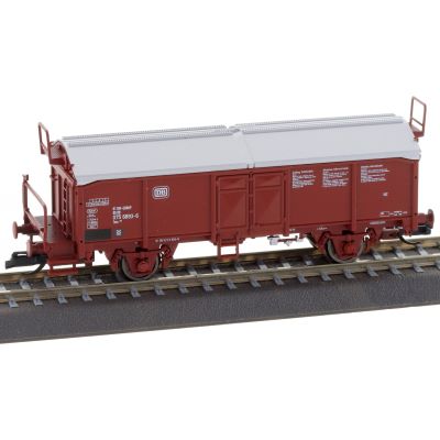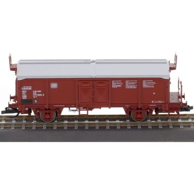 The German Federal Railroad version of the Tms 851 sliding roof car is from Era IV. The car has a coupler pocket and close coupler kinematics and is 88 mm long.