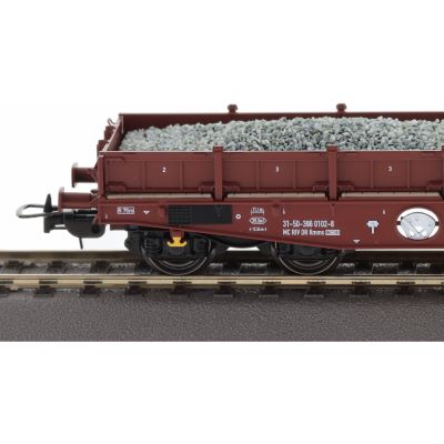 The 70071 H0 German State Railroad (DR) Rmms 3960 heavy freight car set offers you two heavy freight cars loaded with realistically reproduced new ballast. This set is ideal for reproducing construction site and maintenance trains on your layout and allows detailed scenarios of Era IV railroad operation.