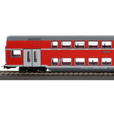 This RegioJet 1st/2nd class DABz755 double-decker coach shines with an era-appropriate look with detailed printing and paintwork. The H0 model has a length of 208 mm and has a coupler pocket and close coupler kinematics. The car also has a complete interior and is prepared for retrofitting interior lighting.