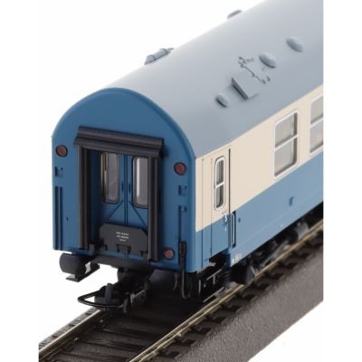 The model has a length over buffers (LüP) of 282 mm and is equipped with an NEM coupling shaft and close coupling kinematics. These ensure realistic coupling in the train formation and a prototypical distance between the wagons. The robust running gear ensures stable running, even on tight radii from 360 mm.