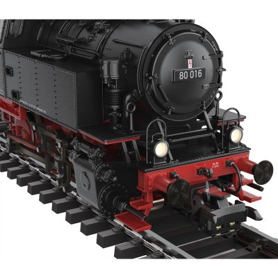 The Trix 25080 is a particularly detailed version of the class 80 tank locomotive - a typical representative of the shunting and local freight traffic of the German Federal Railroad. In a deep black paint scheme with road number 80 016, it shows the condition around 1953. With three boiler superstructures, a chime and turbo-dynamo on the left side and a smoke box door without a central lock, the model is a striking example of German post-war steam technology of Era III.
